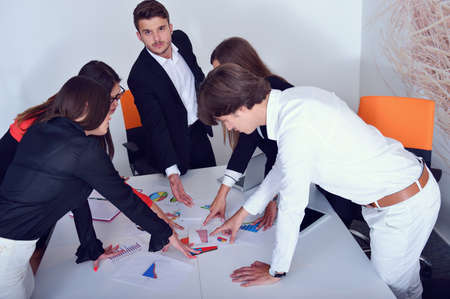 Collaborate team of young business men and women, professional colleagues, effective teamwork.
