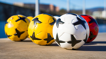 many colors soccer balls dog toy close up