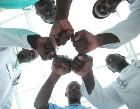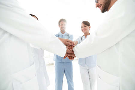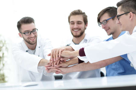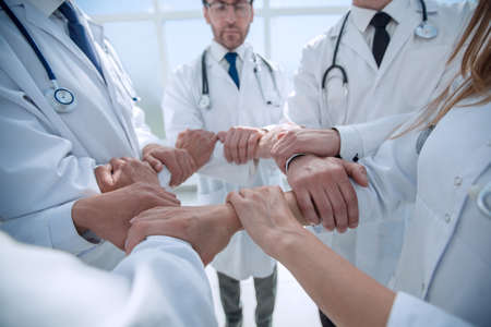 closeup.Small group of doctor team joining hands,