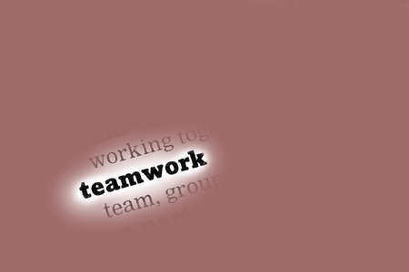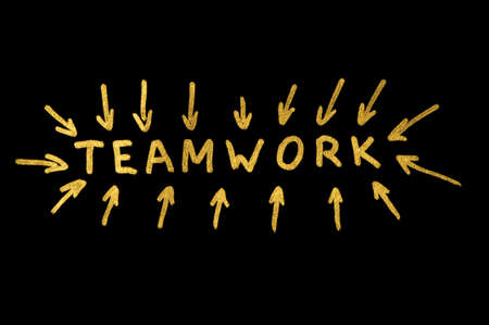 The word teamwork is standing on a chalkboard, working together, corporate in team, communication and support concept