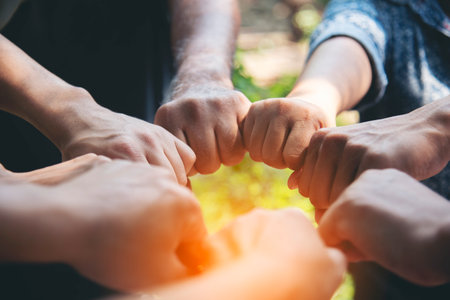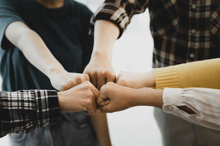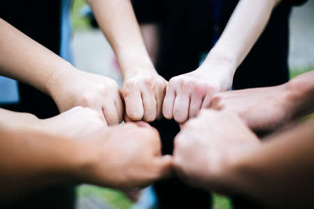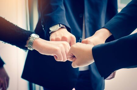 Group of business people putting their fists success for dealing,Team work to achieve goals,Hand coordination