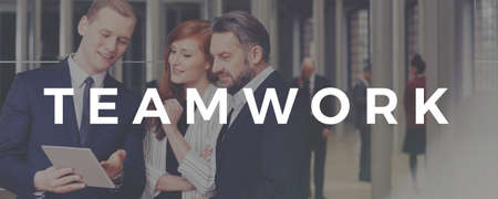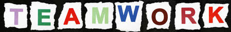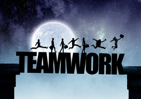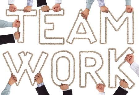 A conceptual photo with a team of workers and word, which represents teamwork.
