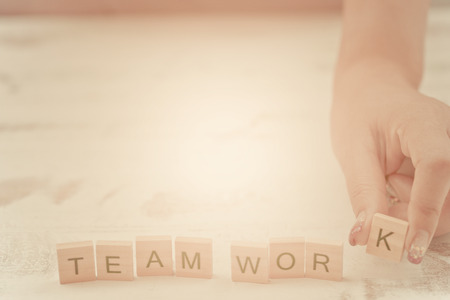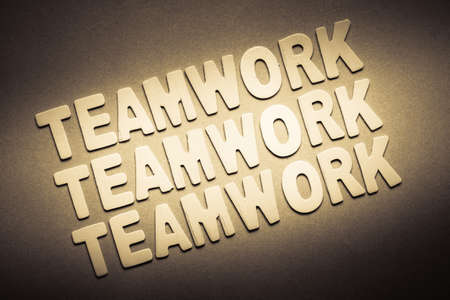 Key word teamwork on wood table part of business working. Concept work teamwork Business. Wooden cross word alphabet