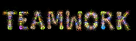 Businessl concept image of Teamwork message written with sparkle fireworks on black sky background