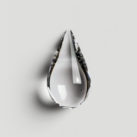 A stunning crystal water drop showcasing unique internal reflection and smooth surface. Perfect for minimalist designs and artistic projects, this image captures the beauty of simplicity and elegance.
