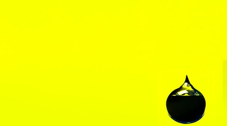 Minimalism composition with one water drop on yellow surface. Optical lens on orange background.