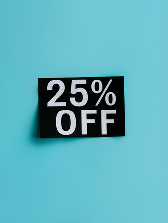 Black '25% OFF' Promotional Sign on a Cyan Background