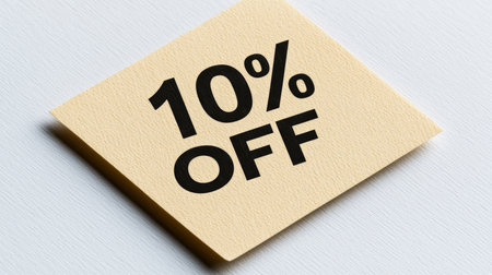 Minimalist Beige Note with quot10 OFFquot Text, Discount Concept on White Background
