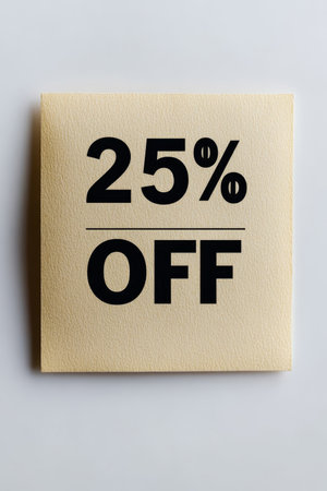 Ivory Square Sticky Note with 25 Off in Bold Black Letters, Isolated on White Background