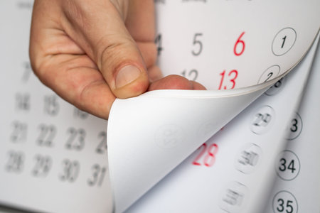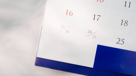 Close up calendar page dates abstract blurred background business planning appointment meeting concept