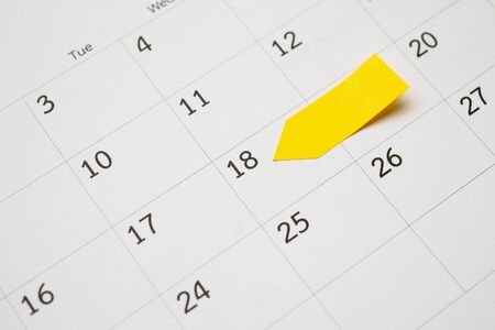 Blank yellow sticky adhesive post note paper planner with space on calendar page background for business planning appointment meeting concept