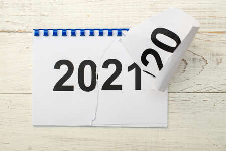 Coming new 2021 concept. Flipping over a notebook with inscriptions of years.