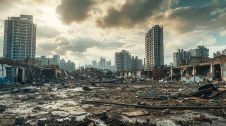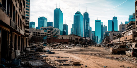 AI Generated. A city street with a lot of rubble on the ground