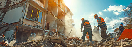 Dynamic Action Shot of Demolition Work in Progress