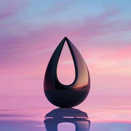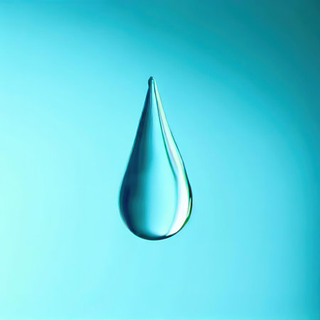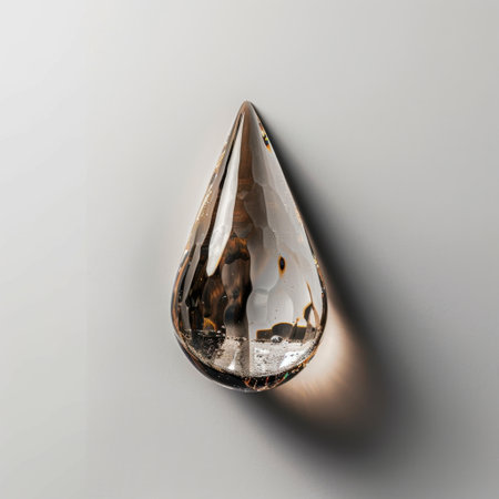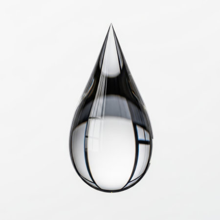 A striking clear water drop shape rests on a minimalist background, showcasing the beauty of simplicity and elegance, ideal for modern design themes and nature concepts.