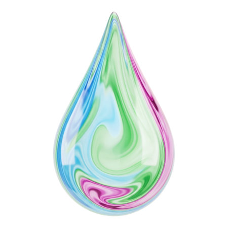 A colorful teardrop shaped object with swirling patterns of pink, green, and blue hues.