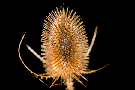 Wild teasel (dipsacus fullonum) in close up on a late summer field. natural macro photography. Generative AI