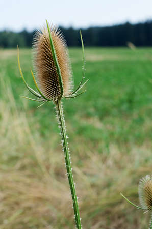 Teasel flower (Dipsacus fullonum) in the field