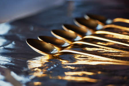 Teaspoons on foil. Beautiful reflection. Abstract photography