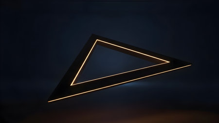 An illuminated triangular frame with a radiant yellow light on a dark abstract background. A modern geometric glowing shape.