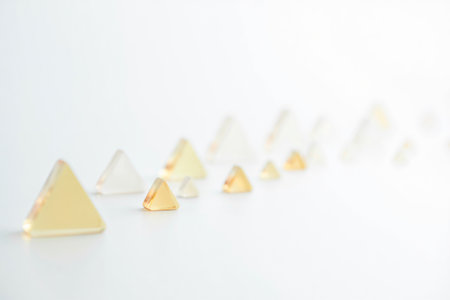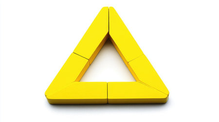 This image features a bright yellow triangular arrangement of interlocking blocks, symbolizing creativity and innovation. Ideal for design and architecture concepts.