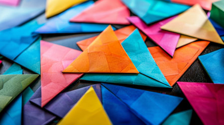 A stunning display of colorful paper triangles arranged in a vibrant pattern, perfect for inspiring creativity and design ideas for various art projects.
