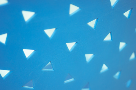 Abstract composition over blue paper background with pink triangular shapes. Minimal style. Top view