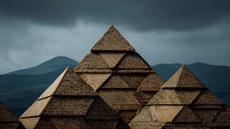 A mountain with a triangle in the middle. abstract background. Generative AI