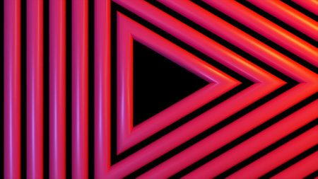 Abstract concept. Pink background of triangles shapes on isolated black background. Red color. 3d illustration. High quality 3d illustration