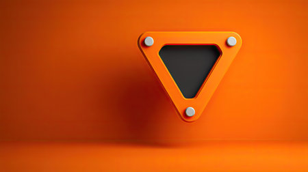 Three-dimensional, geometric triangle in orange, with light gray accents, on a flat orange backdrop. The triangle has a hollow interior. The image appears to have been digitally rendered, likely in a 3D modeling software.