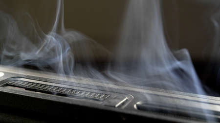 Smoke Rising from Burnt Electronic Computer Device due to Short Circuit