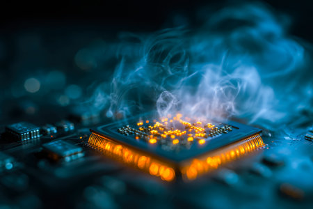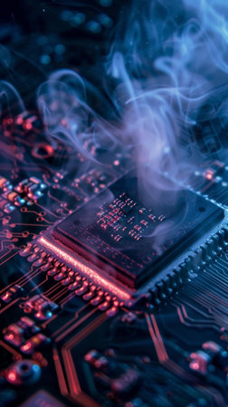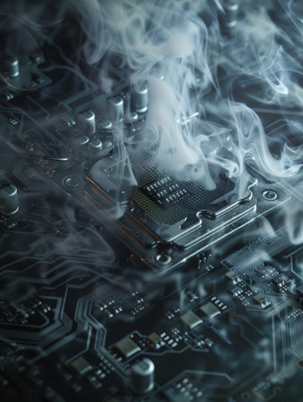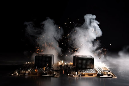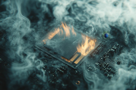 Computer components undergoing intense overclocking and overheating. Generative AI
