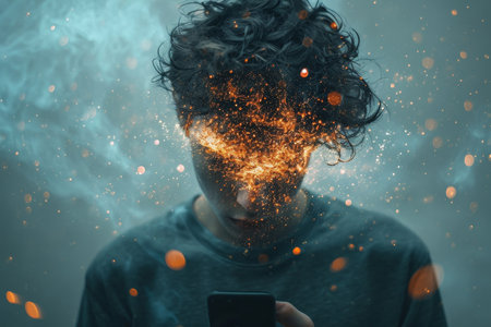 This captivating image showcases an explosion of sparks emanating from a smartphone screen, set against a dark backdrop, evoking energy and innovation.