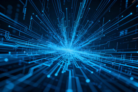 Connectivity. showing abstract blue light streaks radiating from a central point creating a sense of speed and data...