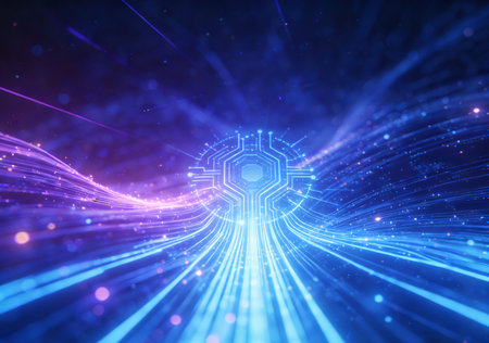 Experience a captivating scene filled with dynamic light particles that creates an illusion of speed and energy, perfect for technology and abstract-themed projects.