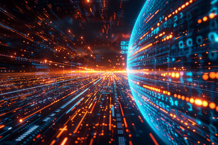Abstract technological background in vibrant colors with a digital code