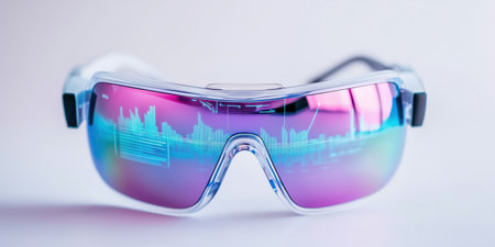 Futuristic Smart Glasses Displaying Virtual Cityscape. Generative AI.