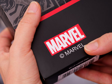 Tambov, Russian Federation - December 19, 2023 Woman holding a Marvel box in her hands