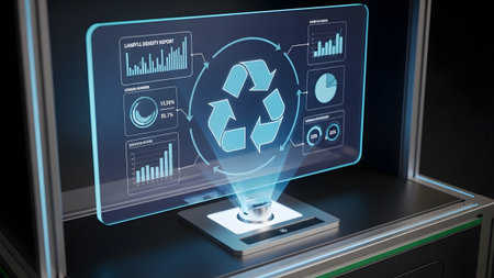 Futuristic holographic display visualizing recycling data and sustainability progress