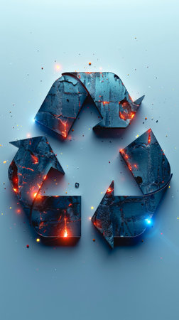 Glowing 3D recycling symbol with green elements, promoting eco-consciousness and recycling.