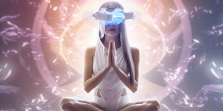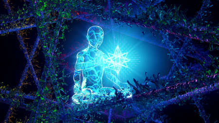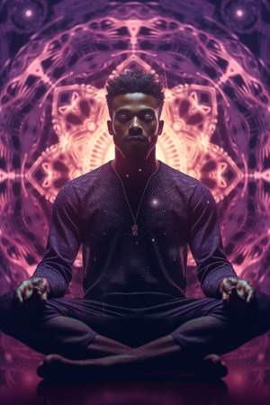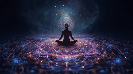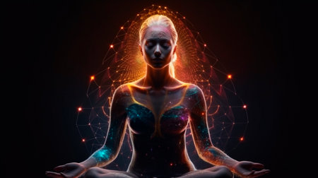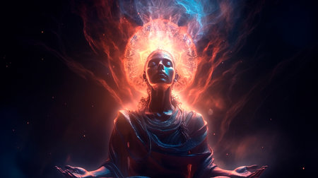 Illustration of spiritual awakening enlightenment meditation. Generative AI illustrator