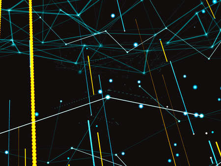 Distribution of lines and points in space. Digital background of data network connection. 3D.