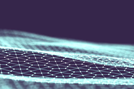 Wave of interlacing points and lines. Abstract background. Technological style for science, big data.3d rendering.