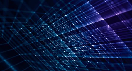 Abstract technology perspective grid background. Digital network connection structure. 3D rendering.