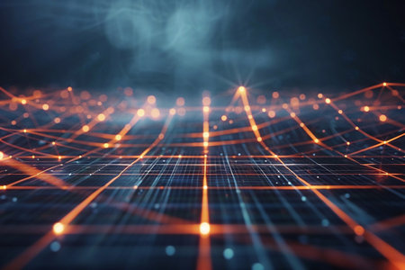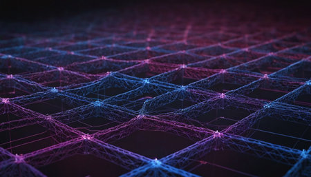 This image depicts an abstract representation of interconnected networks. It features a complex web of nodes and lines against a dark background, illustrating the intricate relationships and pathways within a digital or technological framework. The nodes are illuminated with a soft glow, highlighting the importance of each connection in the overall structure.