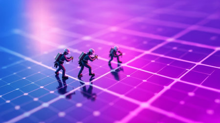 Miniature workers collaborate on a vibrant phone case, using tools to create something special. Their teamwork shines under bright light, adding a playful charm to the everyday object.