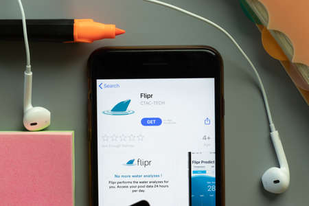 New York, USA - 1 December 2020: Flipr mobile app icon on phone screen top view, Illustrative Editorial.