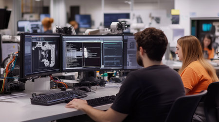 Students work on coding projects in a modern computer lab during a collaborative learning session
