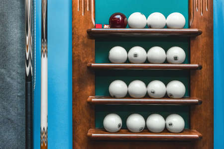 game of billiards. billiard accessories. Cue for hitting balls. game table.