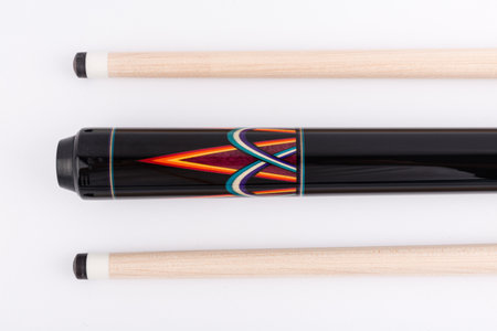 Cues for billiard, snooker realistic templates set . Wooden sticks with various design for cuesports.
